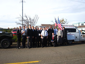 Tuesday night we went on exchanges with the zone leaders. Within the first 5 minutes of our exchange I am driving in the car with Elder Ottesen. He decides to slam on the brake while I have my Taco Bell in my hands. Boom! There goes all my food and drink all over the car! So, I am like ok, whatever! Then we get to the institute building to teach a lesson to a kid named Nate! I step out of the car quickly because we're in a hurry. To my surprise I find myself in a 2 foot deep puddle of water! Yeahhhhhhh! I was soaked! So I go inside to the building and sit down for the lesson. When I stand up and Elder Ottesen starts laughing! Why? Well, I am covered head to toe in dog hair! Where it came from, no clue! Then I had probably thee worst sleep ever that night due to the mattress! Hahah! That's the life of a missionary!